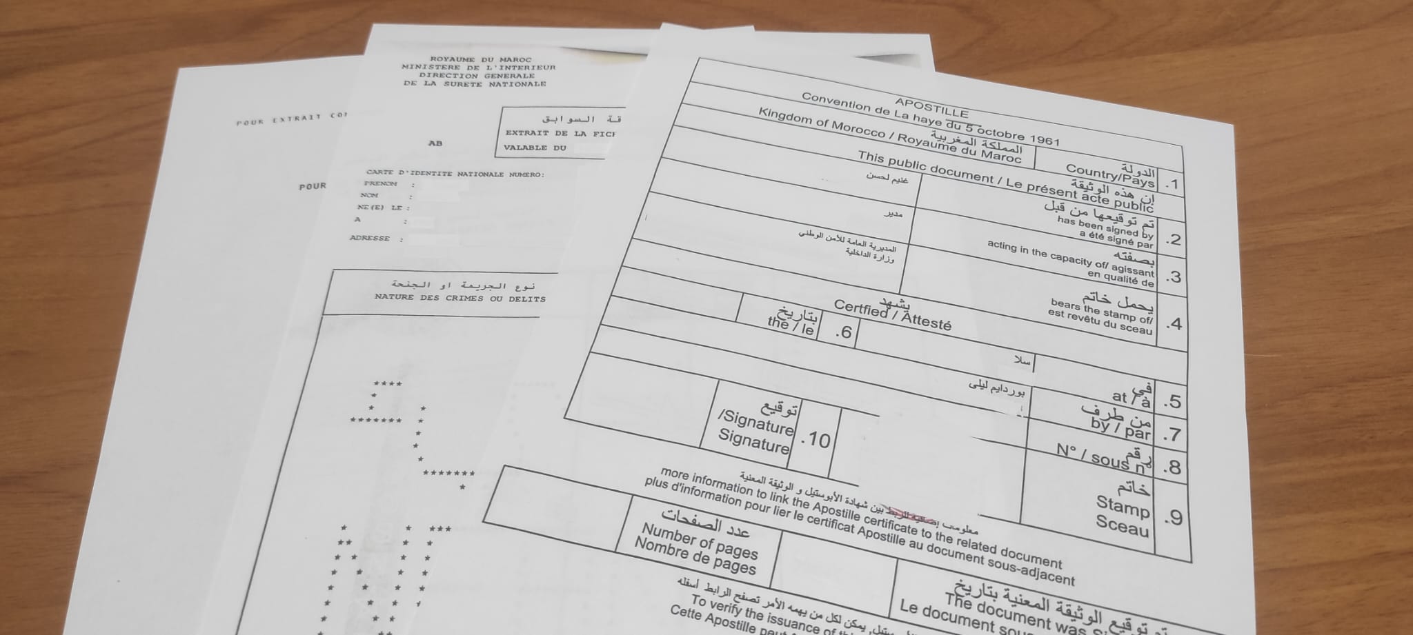 Los antecedentes penales de Marruecos tienen este formato: